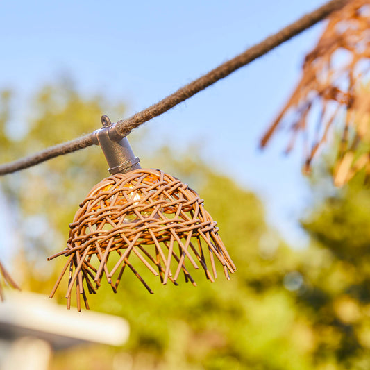 Guirlande lumineuse extérieur connectable 10 abat-jour naturels en bambou NATURA LIGHT HYBRID LED blanc chaud 8m solaire et sur secteur