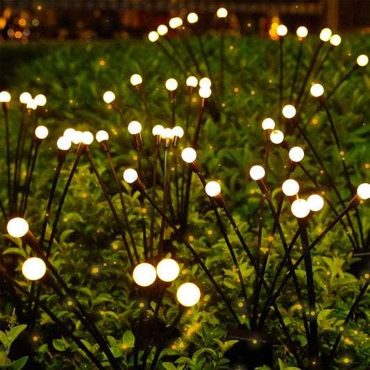 Lot de 9 torches solaires 90 boules lumineuses avec panneau solaire déporté LED blanc chaud LYRA FAMILY X3 H70cm