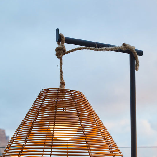Lampadaire d'extérieur sur secteur SELMA en métal avec abat-jour en polyrotin H150 cm culot E27