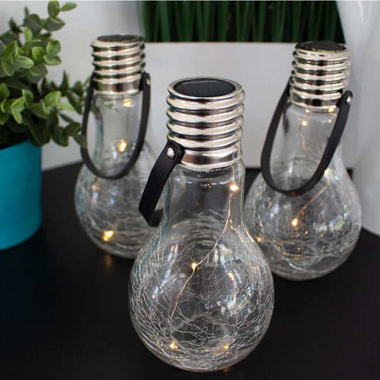 Lot de 3 ampoules solaires verre craquelé à poser ou à suspendre micro LED blanc chaud CRACK EDISUN H22cm