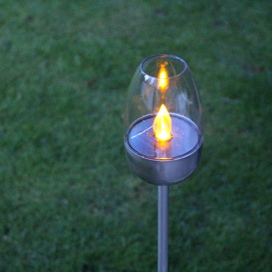 Balise solaire à planter effet bougie LED blanc chaud OLYMPE H113cm