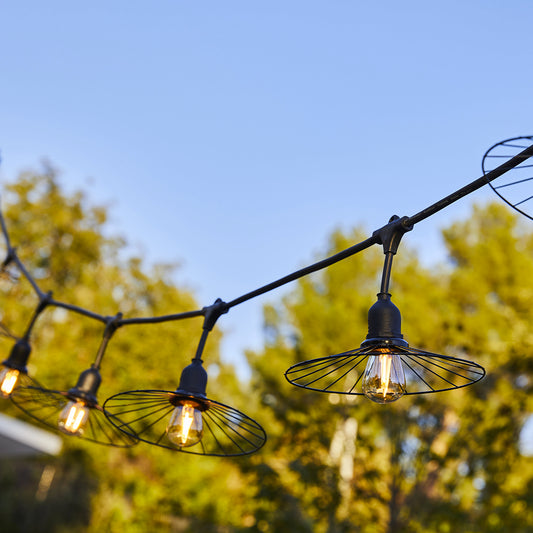 Guirlande lumineuse raccordable d'extérieur avec abat-jour en métal filaire 10 ampoules à filament douille E27 LED blanc chaud CHIC CAGE LIGHT CONNECTABLE 6m
