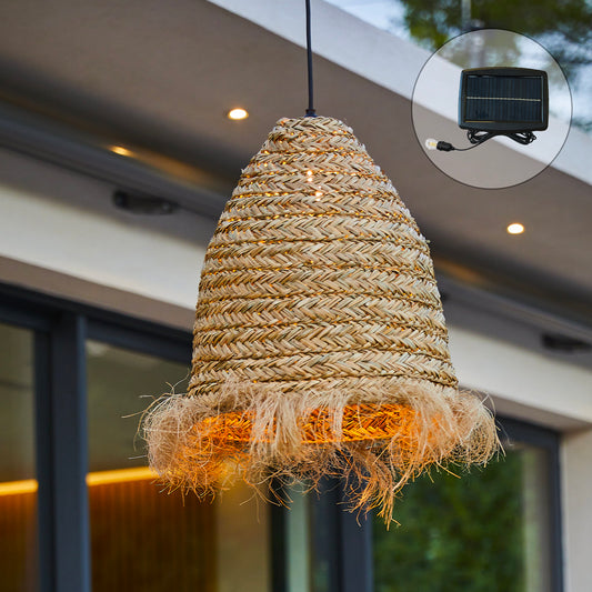 Suspension solaire GIACOMO SOLAR en rotin naturel avec câble hybride secteur et solaire 5m de longueur