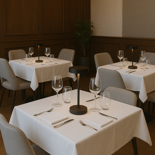 Lot de 9 lampes de table sans fil LED blanc chaud dimmable EMILY GREY H25cm avec plateau de chargement