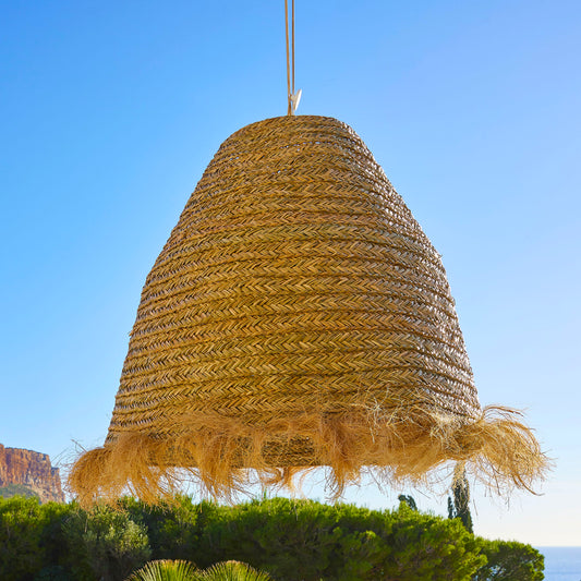 Abat jour naturel XXL BIG ANAFI INDOOR en jonc de mer style bohème H80cm pour monture électrique E27