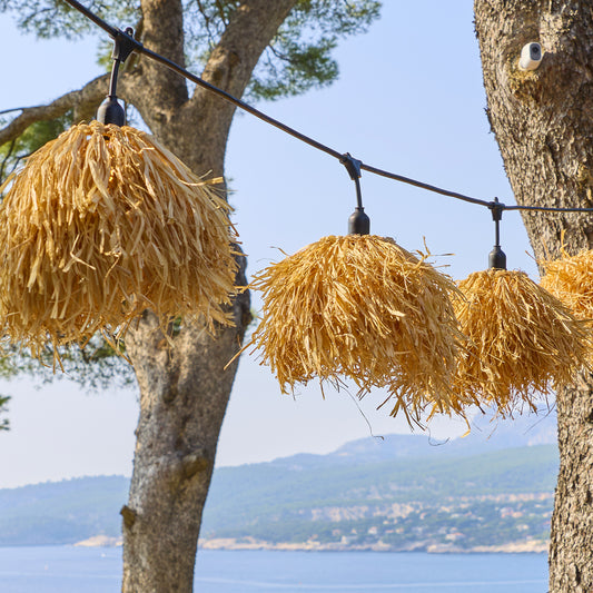 Guirlande lumineuse extérieure raccordable 35.4m avec 56 ampoules LED filament E27 blanc chaud TAHITI LIGHT Abat-jour en paille bohème