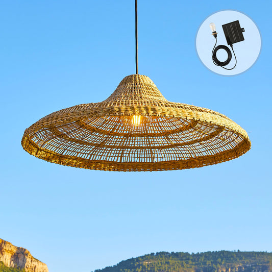 Suspension solaire GIACOMO SOLAR en rotin naturel avec câble hybride secteur et solaire 5m de longueur