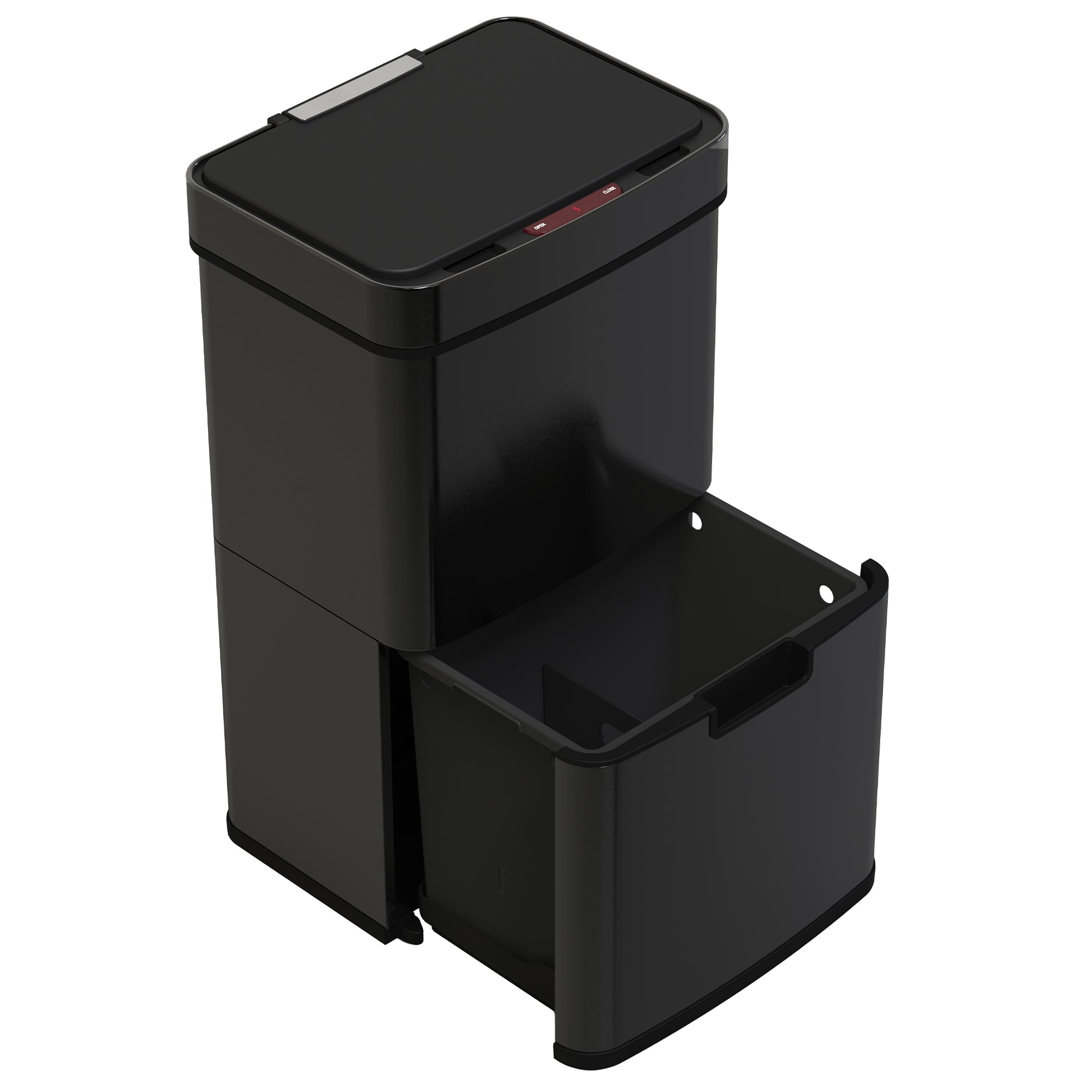Poubelle De Cuisine Automatique Tri Sélectif Double Compartiment 75l NARVIK Noir brillant Recyclage Grande Capacité Et Poubelle De Table 3l