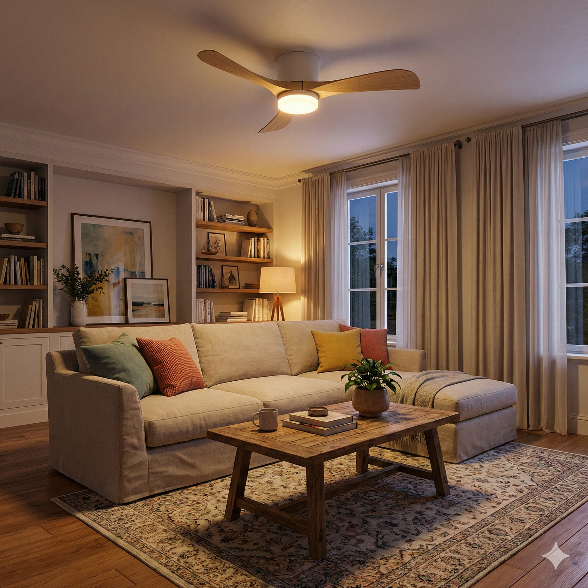 Sublimez vos grandes pièces de vie avec le ventilateur de plafond ALIYA de 132 cm (52 pouces), une solution de ventilation XL 2-en-1 conçue pour les espaces de 25 m² et plus. Ce modèle haute performance se distingue par son moteur DC de 30W à courant continu, offrant un débit d'air impressionnant de 9000 m³/h tout en garantissant une consommation énergétique maîtrisée. Équipé d'un plafonnier LED puissant de 30W délivrant 2100 lumens, il constitue la source lumineuse principale idéale pour un salon ou un séjour spacieux. Grâce à sa fonction réversible pilotable par télécommande, il assure un confort optimal toute l'année : rafraîchissement intense en été et redistribution de la chaleur vers le bas en hiver pour optimiser votre chauffage. Avec son design moderne et épuré, ce ventilateur de 3,50 kg s'installe facilement et fonctionne de manière fluide. Alliez puissance de brassage, éclairage performant et silence pour une atmosphère saine et élégante dans vos plus grands volumes intérieurs.