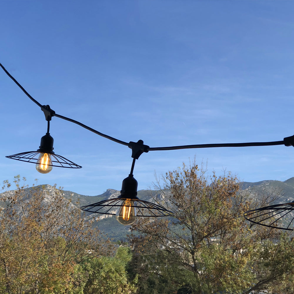 Guirlande extérieur avec abat-jour en acier effet cage 10 douilles E27 CHIC CAGE 6m