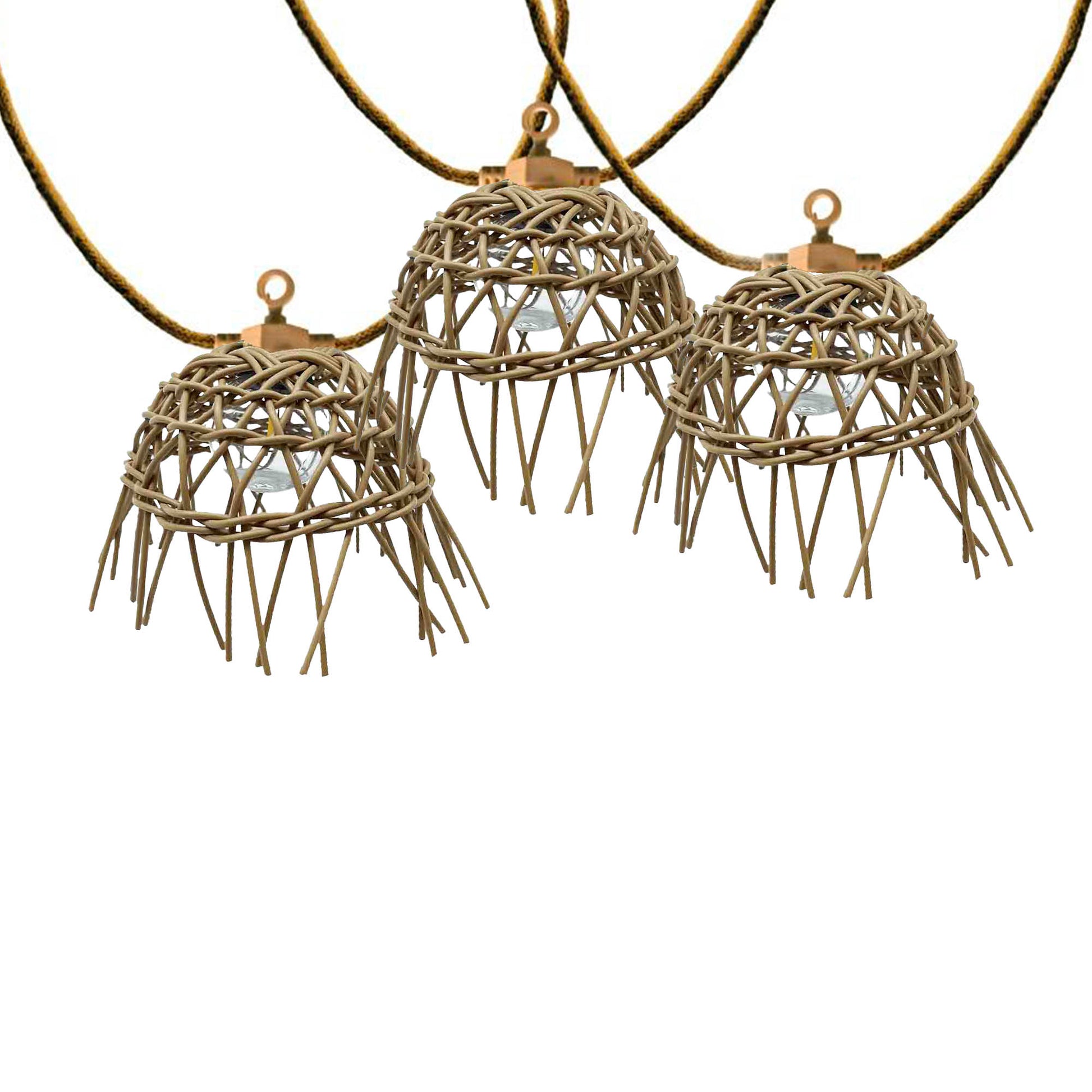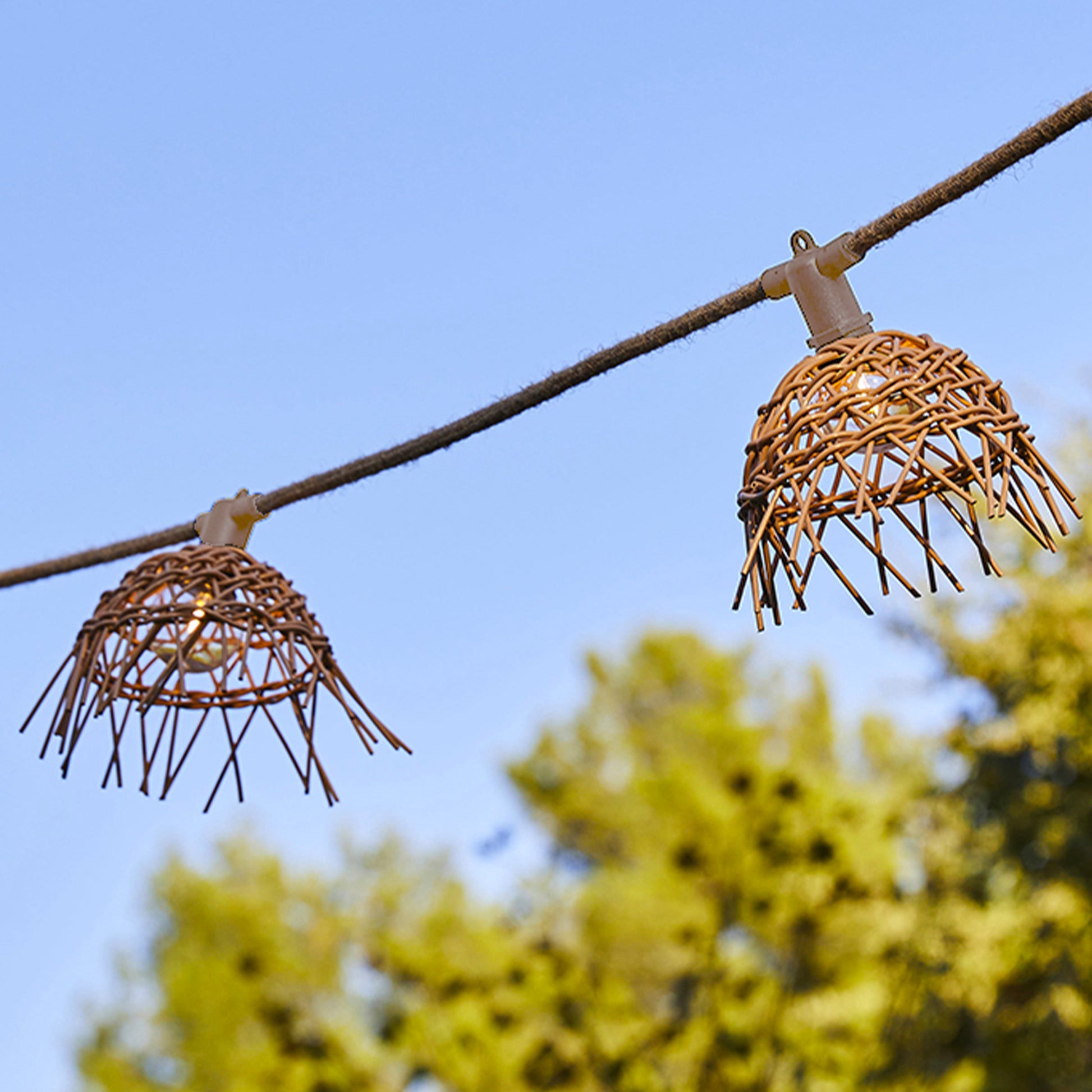Guirlande lumineuse extérieur 10 abat-jour exotique paille MINI HAWAI LIGHT HYBRID LED blanc chaud 8m solaire et sur secteur