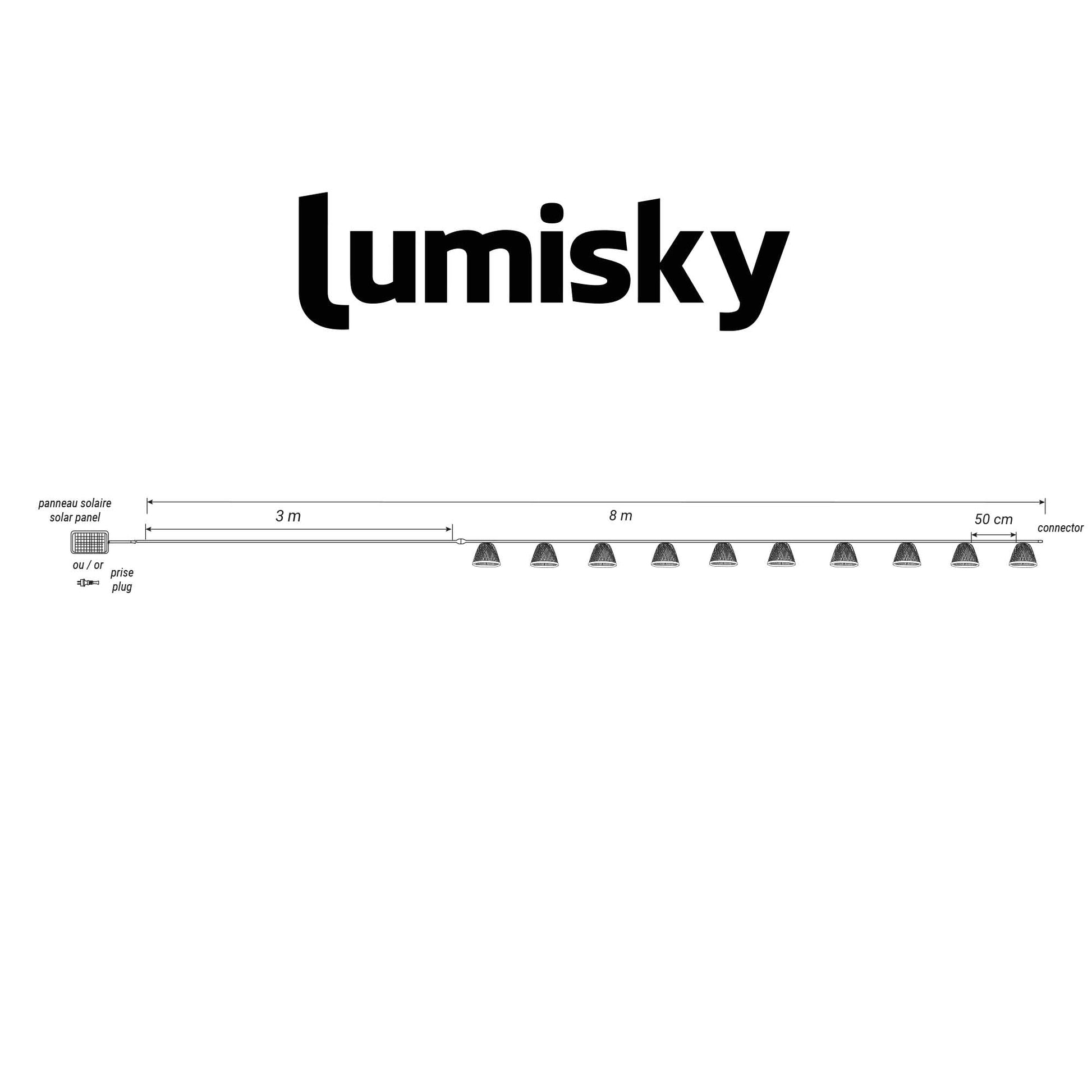 • Durabilité : La guirlande solaire Maly Light Hybrid design d’une longueur totale de 8m composée de 10 ampoules transparentes est protégée contre les éclaboussures (IP 44) et résiste aussi aux UV. Il y a 50cm entre chaque ampoule.