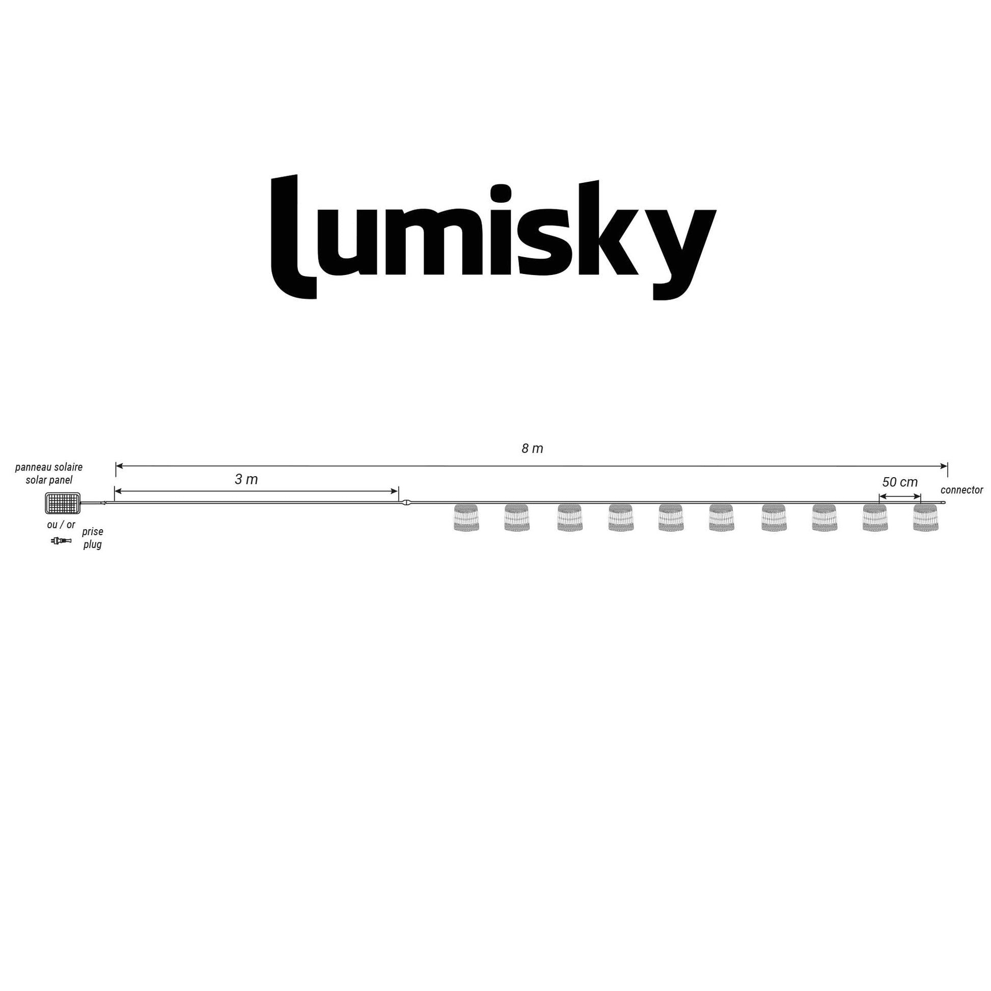 • Durabilité : Mesurant 8m de longueur totale avec 10 ampoules transparentes, la guirlande LED Samoa Light Hybrid est protégée contre les éclaboussures (IP44) et résistante aux UV. Avec un espacement de 50 cm entre chaque ampoule et 3 m entre la prise et la première ampoule, elle allie fonctionnalité et robustesse.