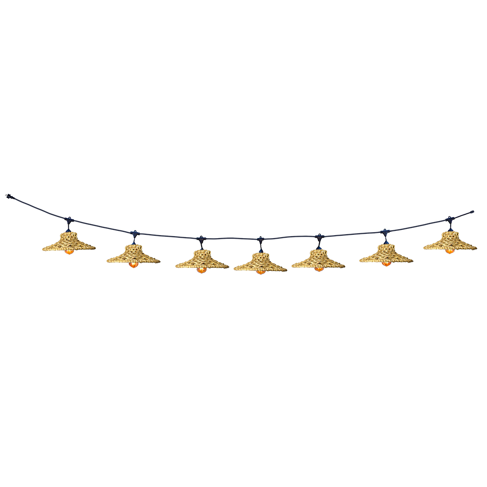 Guirlande lumineuse raccordable d'extérieur avec abat-jour en jacinthe d'eau naturelle style bohème 7 ampoules à filament douille E27 LED blanc chaud MOOREA LIGHT CONNECTABLE 6m
