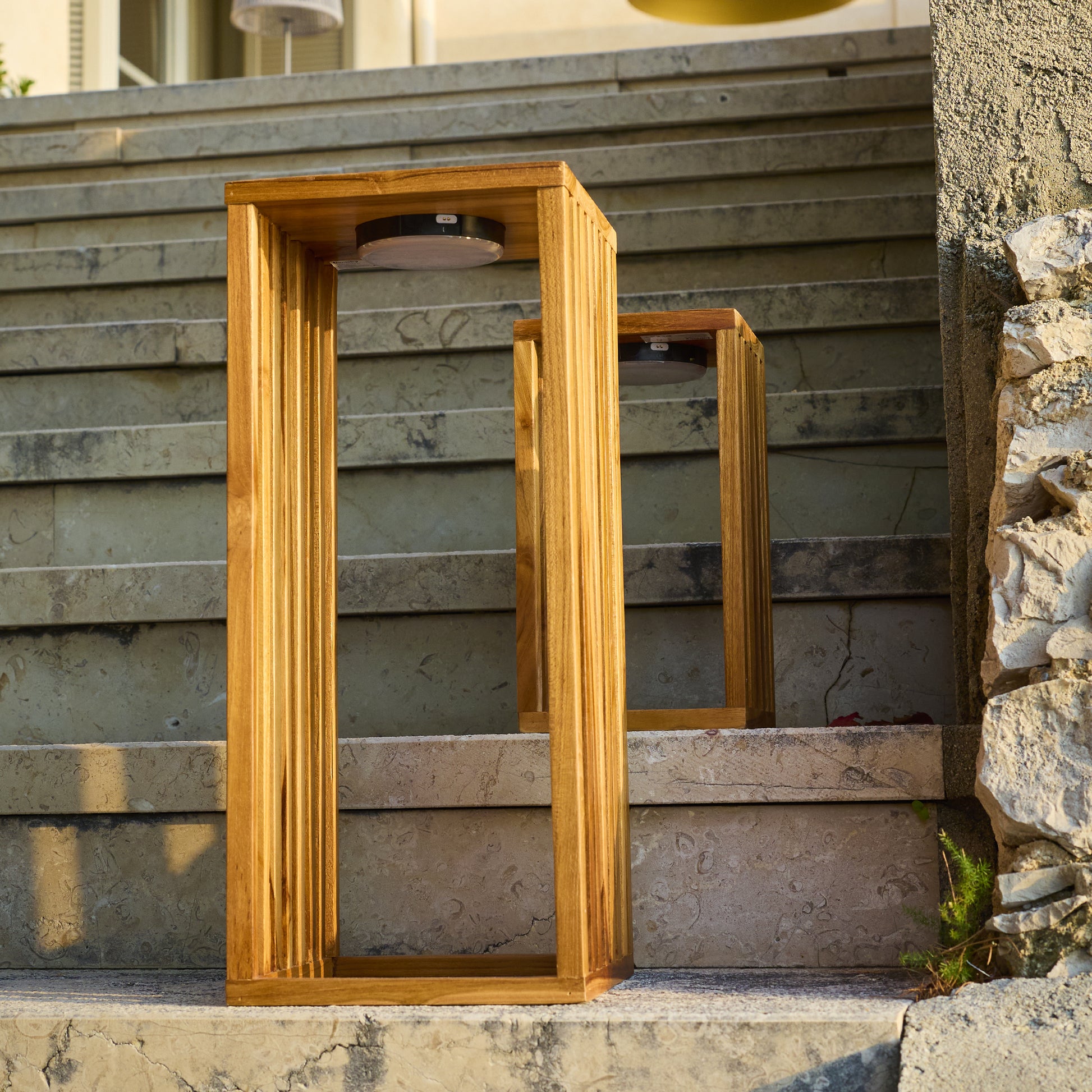 Lanterne solaire décorative LED blanc chaud CHENNAI TALL en bois teck massif H50cm