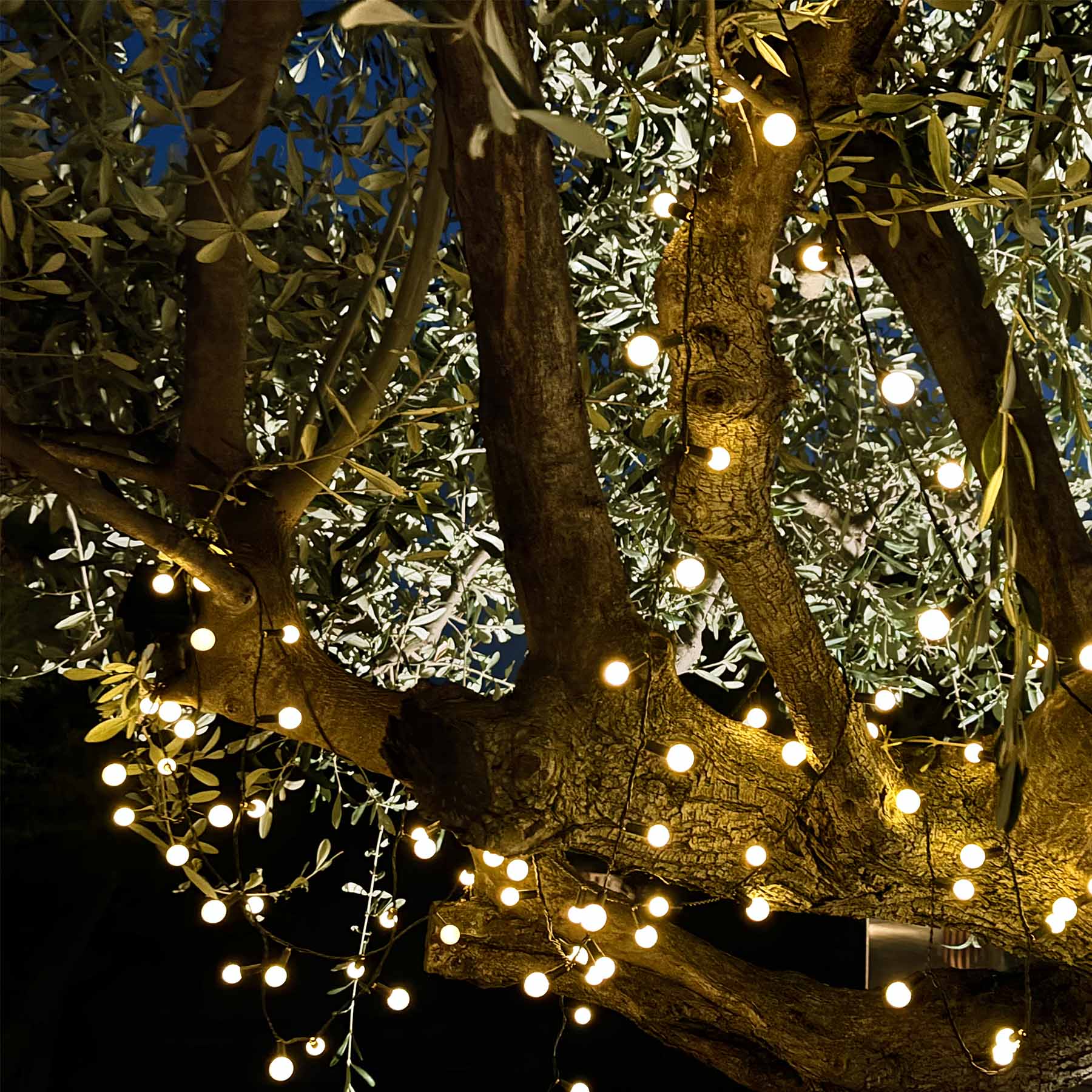 Lot de 2 guirlandes lumineuses solaires ampoules rondes 60 LED blanc chaud BILLY 6.90m