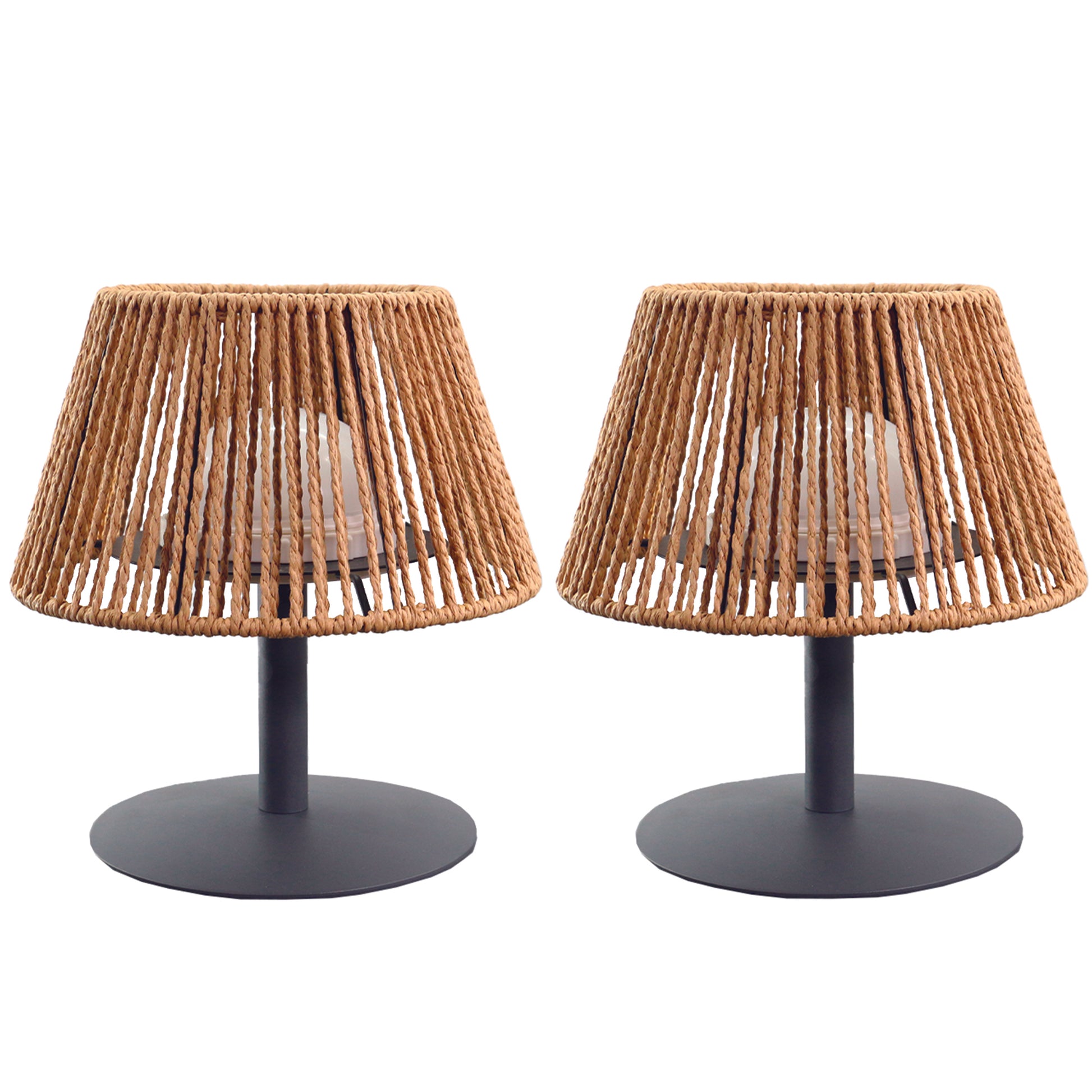 Le Lot de 2 Lampes de Table LED Sans Fil STANDY MINI RAFFY est une solution d'éclairage autonome et élégante, parfaite pour une ambiance tendance et folk. Ces deux lampes de table se distinguent par leur design naturel et robuste, associant un pied en acier à un abat-jour en raphia naturel tressé. Polyvalentes, elles sont conçues pour une utilisation en intérieur comme en extérieur (terrasse, salon, chevet). Grâce à la base LED intégrée, elles offrent une lumière blanc chaud/blanc froid dont l'intensité est variable, vous permettant d'adapter l'éclairage selon l'ambiance désirée. Pratiques et robustes, les lampes ont une hauteur totale de 20 x H22 cm, sont protégées contre les éclaboussures (IP44), et résistent aux UV. Après une charge de 4 à 6 heures via le câble USB fourni, elles bénéficient d'une autonomie de fonctionnement allant jusqu'à 8 heures, assurant un éclairage efficace (flux lumineux de plus de 100 lumens.