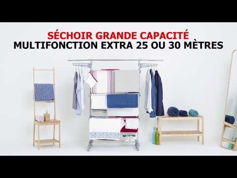 - Étendoir à linge multifonction grande capacité, entièrement modulable, pratique grâce à ses portes cintres intégrés ! étendez jusqu'à 30 m de linge (équivalent 3 machines) sur 4 niveaux ! Idéal pour les familles nombreuses.