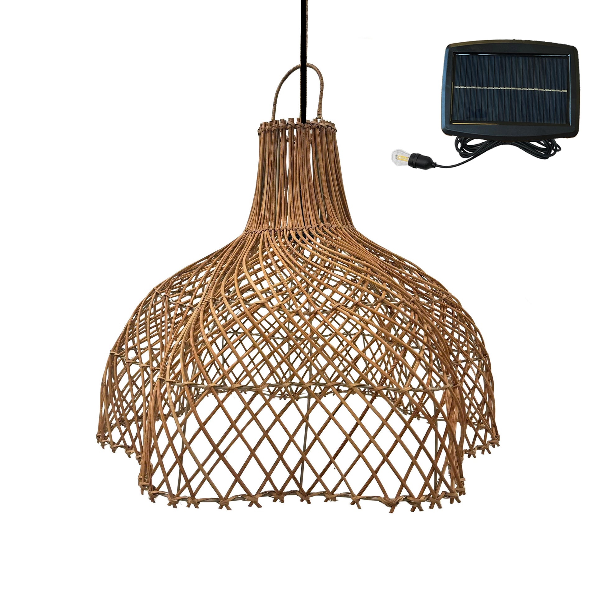 Suspension solaire bohème en rotin naturel style vannerie tressée LED blanc chaud ARIA SOLAR