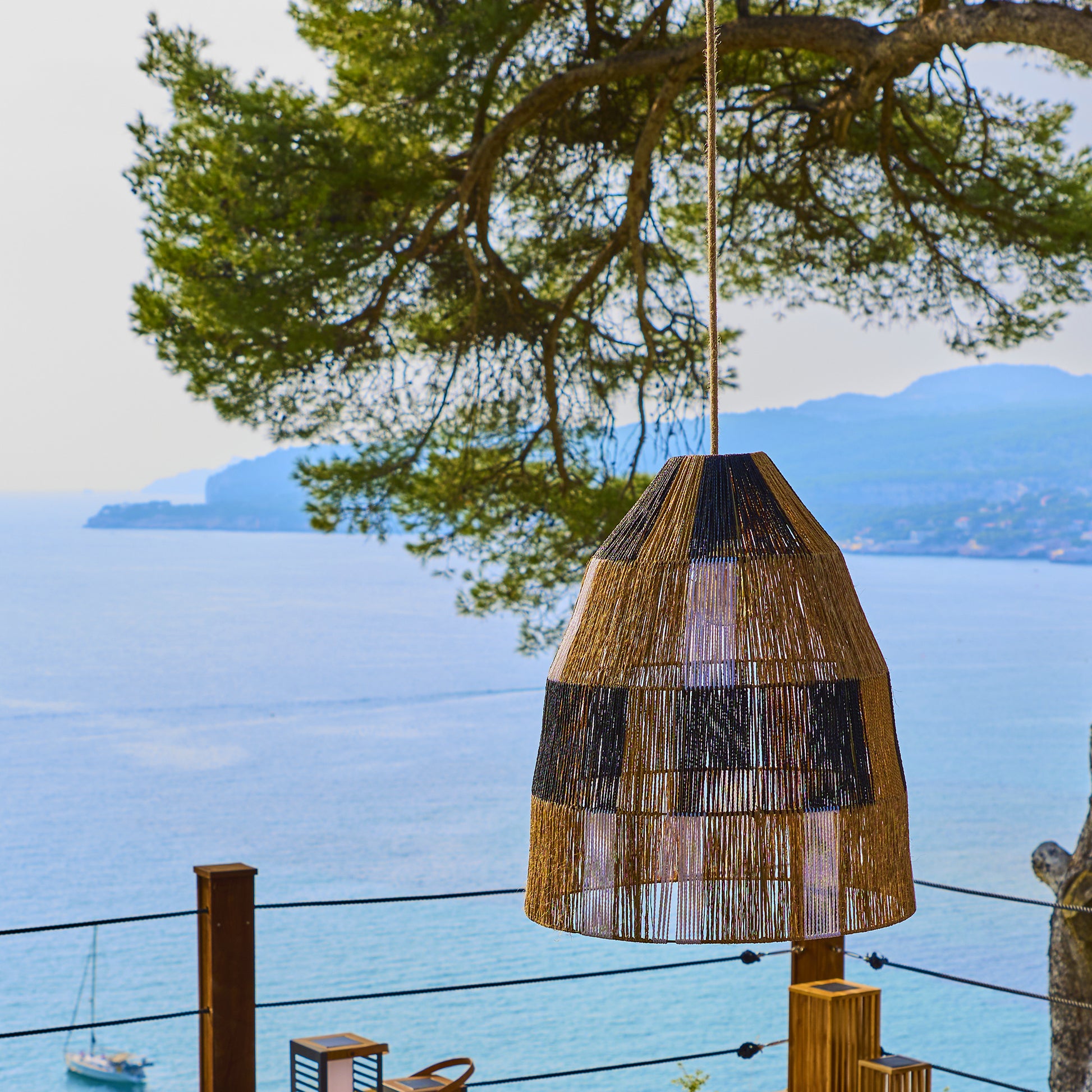 Découvrez la Suspension ZAHARA OUTDOOR CABLE, une pièce artisanale qui apportera un look ethnique chic et chaleureux à votre extérieur. Fabriquée au Vietnam en corde naturelle, cette suspension est une pièce décorative idéale pour un style bohème ou vintage. Design Naturel et Conseils d'Entretien : L'abat-jour est confectionné en corde naturelle (50 x H58cm), un matériau résistant au tressage unique qui sublime votre espace. Pour garantir une longévité maximale et préserver l'aspect de la corde naturelle, il est recommandé de l'installer à l'abri et au sec (par exemple, sous une pergola, un parasol ou une véranda). Installation Filaire Extérieure (IP64) : La suspension est équipée d'un câble pour l'extérieur de 5 mètres avec un raccordement sur secteur (220-240V). C'est le câble et la douille qui sont certifiés IP64, assurant leur protection contre les projections d'eau (nécessaire pour une installation extérieure sécurisée). Suspendez-la sur une branche d'arbre, sous un parasol ou une pergola pour créer une ambiance lumineuse chaleureuse. Ampoule Personnalisable (E27) : Le câble est fourni sans ampoule, vous laissant libre de choisir celle qui vous plaît (culot E27, puissance maximum de 25W).