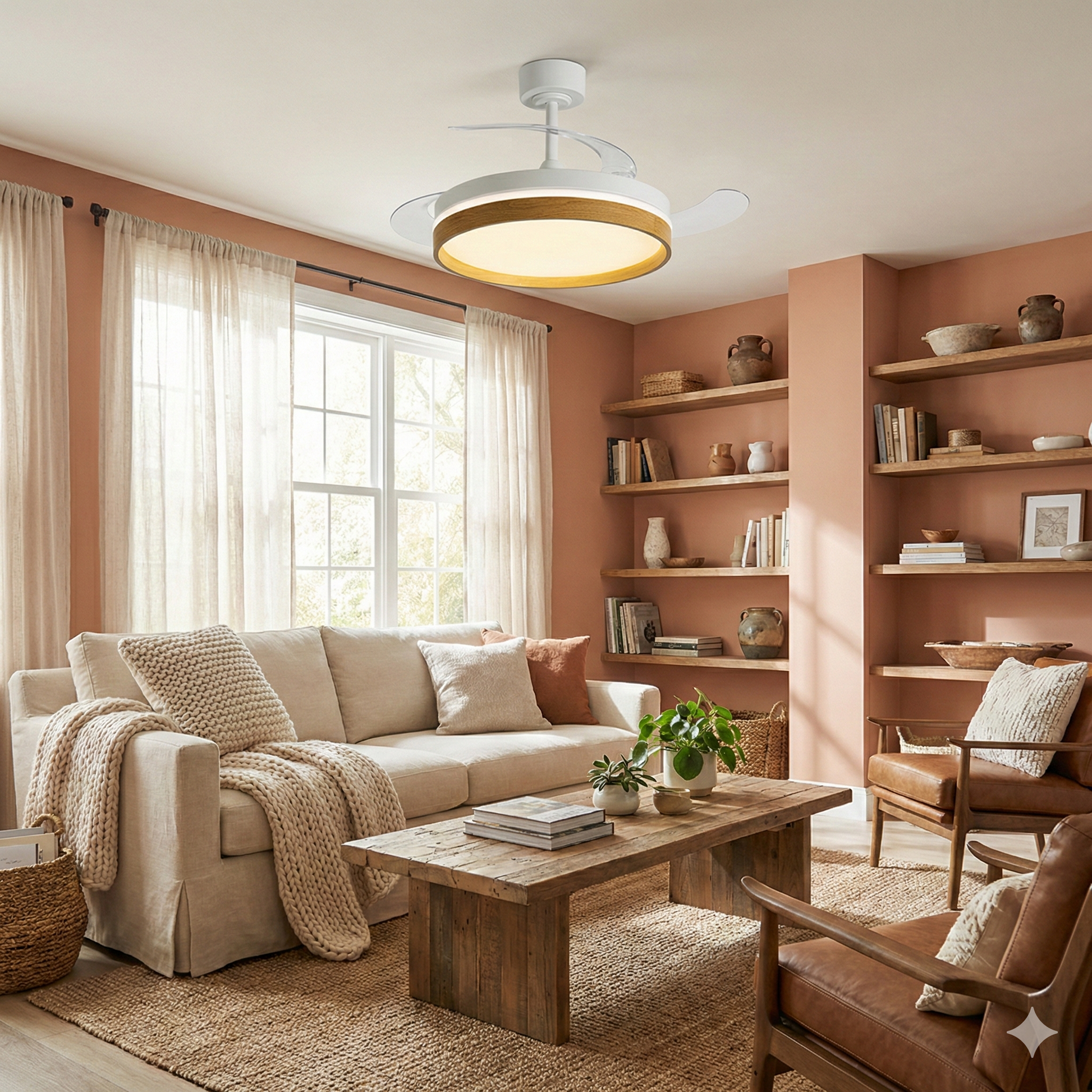 Optimisez votre intérieur avec le ventilateur de plafond CALYSA de 106 cm (42 pouces), une solution 2-en-1 de prestige alliant une technologie de pales rétractables invisibles et un éclairage LED ultra-puissant de 33W délivrant 3500 lumens. Conçu pour les pièces de 13 à 20 m², ce modèle surpasse les standards avec un débit d'air massif de 8100 m³/h, garantissant un rafraîchissement immédiat. Sa conception robuste de 5,8 kg assure une stabilité parfaite sans vibration, même à pleine puissance. Équipé d'un moteur DC 30W réversible, il permet de rafraîchir en été et de redistribuer la chaleur en hiver pour économiser sur votre chauffage. Très discret, il fonctionne dès 34 dB, idéal pour un sommeil paisible. Les ailes escamotables se déploient uniquement lors de la ventilation, transformant l'appareil en un plafonnier moderne et épuré le reste du temps. Pilotable par télécommande, le CALYSA combine un design blanc et bois élégant avec un rendement énergétique exceptionnel pour un confort total toute l'année.